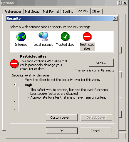 1. On the Main Menu select Tools \ Internet Options \ Security